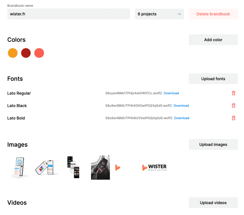 Creatopy provides Brand Kits, three on the Pro plan, unlimited on Team and above, for storing logos, colors, and fonts. The platform also supports Photoshop and Figma import.
