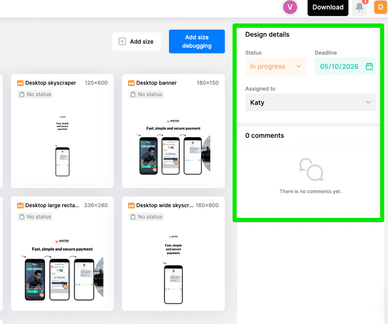 The synced-edit capability is particularly valuable for large campaigns. When a stakeholder requests a copy change or a new CTA color, you make the edit once, and it cascades across every size and language variant instantly. There is no need to open each variation individually, a workflow bottleneck that scales linearly with campaign complexity on most other platforms. This is what makes Viewst a genuine HTML5 banner creator built for volume.
