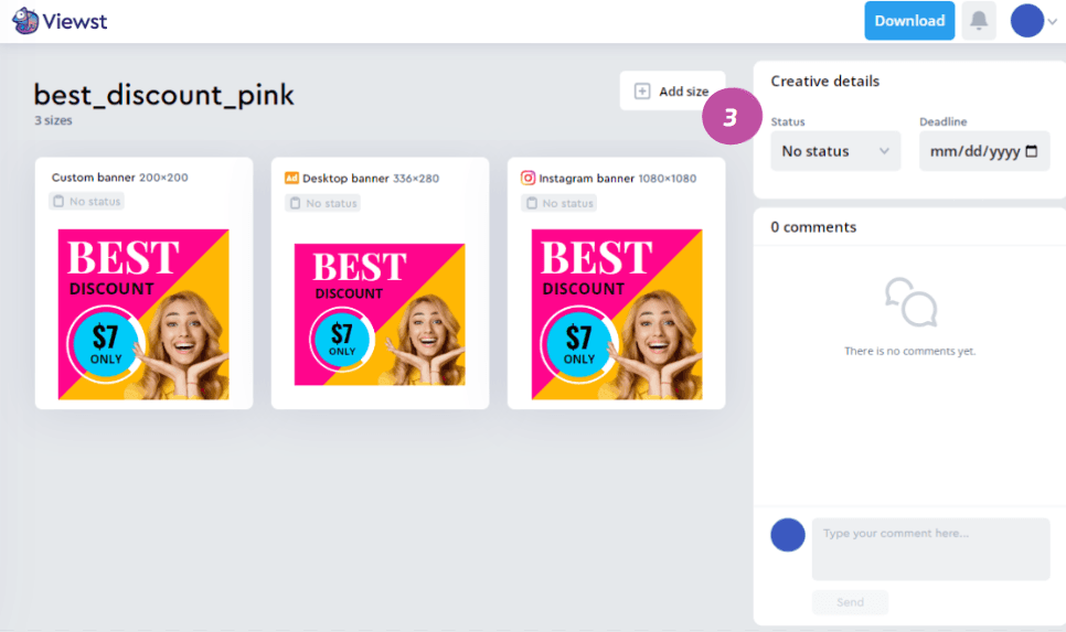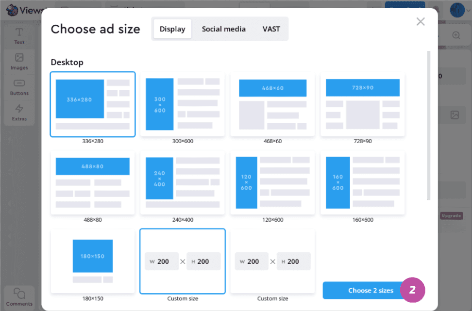 Any Viewst Creative may contain dozens of different sizes. All ads you need for your campaign can be stored in one Creative.