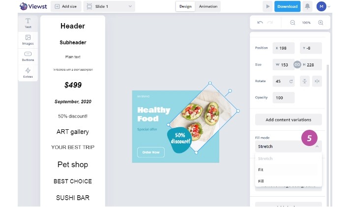 For images, you can also change the Fill mode 5. We recommend using the Fit option.
