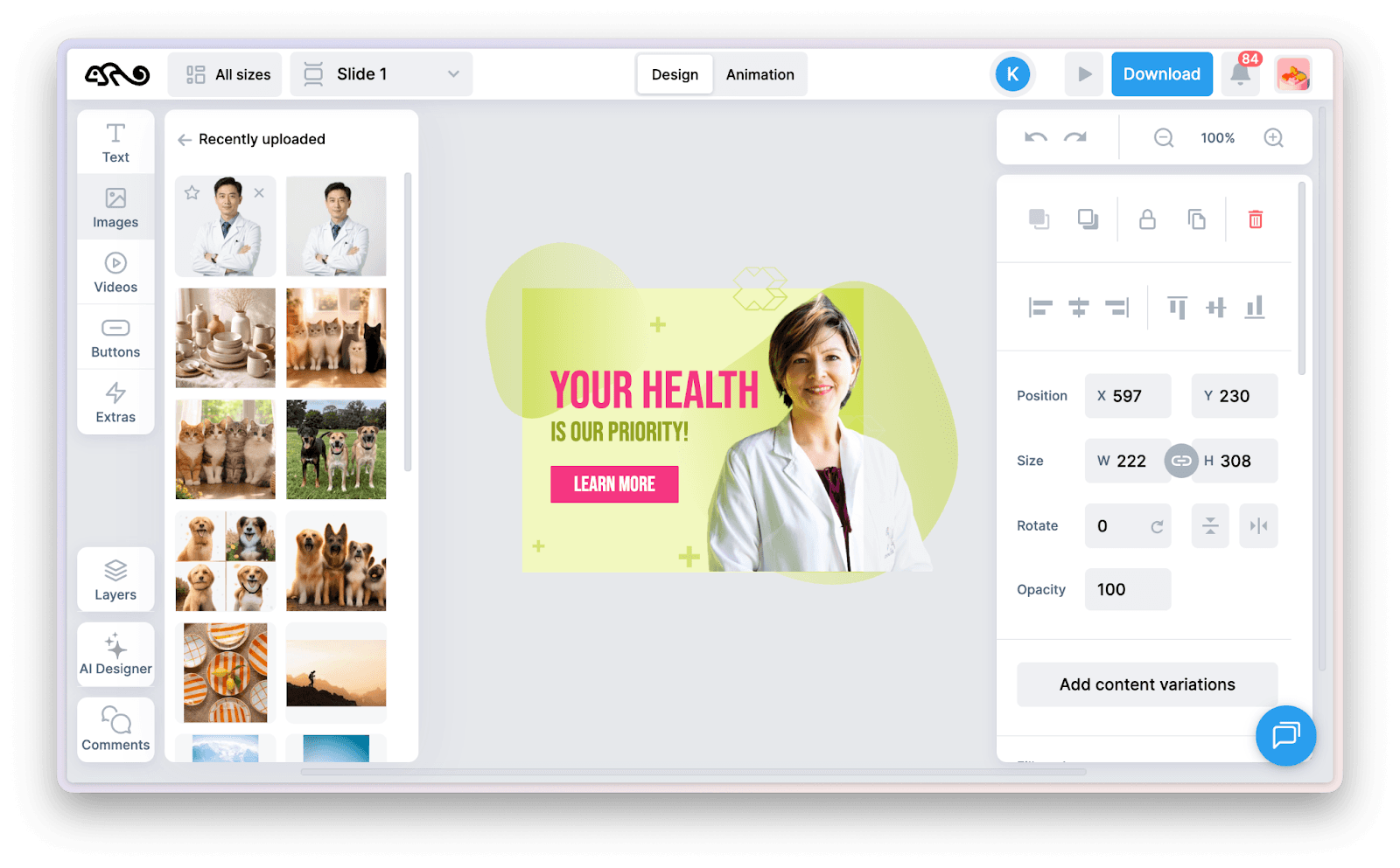 Viewst is an ad production tool. Unlike traditional graphic editors with fully independent artboards, all ad sizes in a Viewst design are synced: