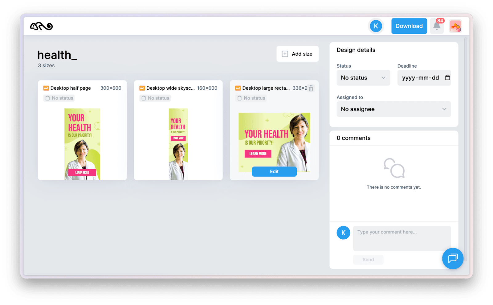 Ad sets are similar to components in Figma: every size (instance) has unique properties, but they share common elements across the set. This allows you to create entire ad sets highly efficiently and apply changes to the whole set of banners in literally seconds. However, it requires a slightly different approach to working with banner sizes.