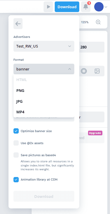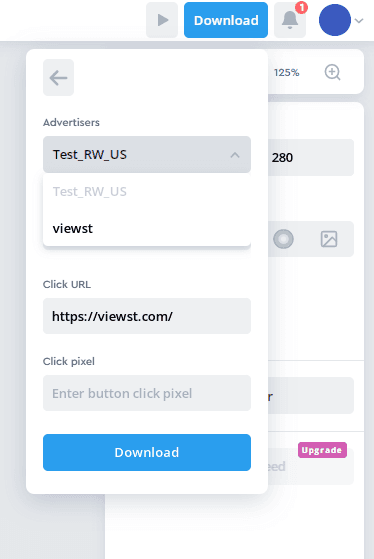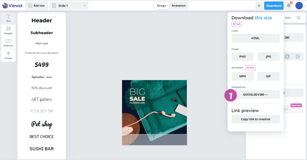 Choose the creative you need and click the Download button. Then choose the Google integration in the panel.