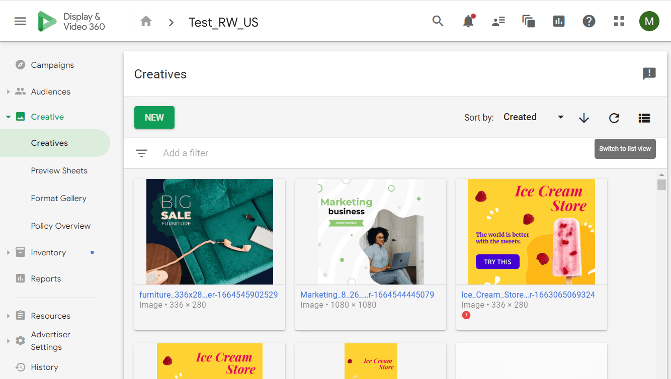 Click the Download button. After a few seconds, creative appears in your DV360 Creatives section.
