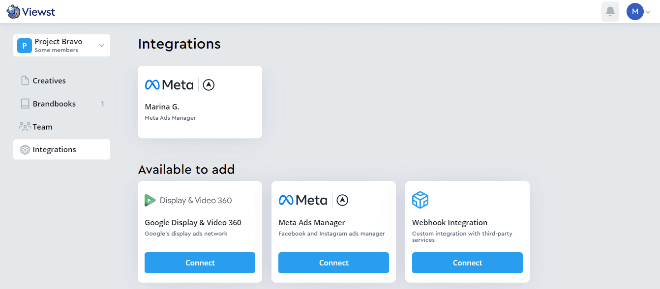 Viewst can be linked with Meta Ads Manager. In addition to downloading creatives, you can streamline them directly to Meta Ads Manager.