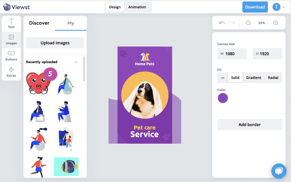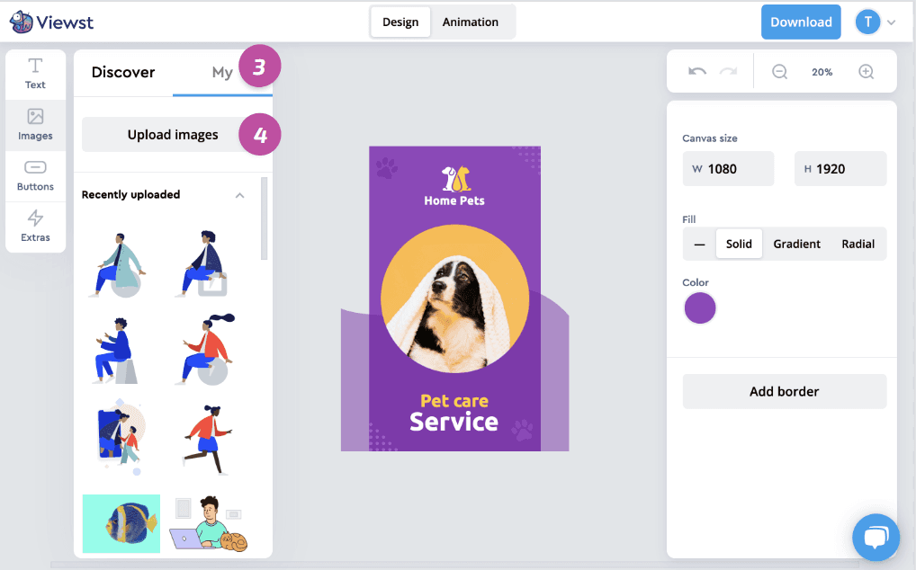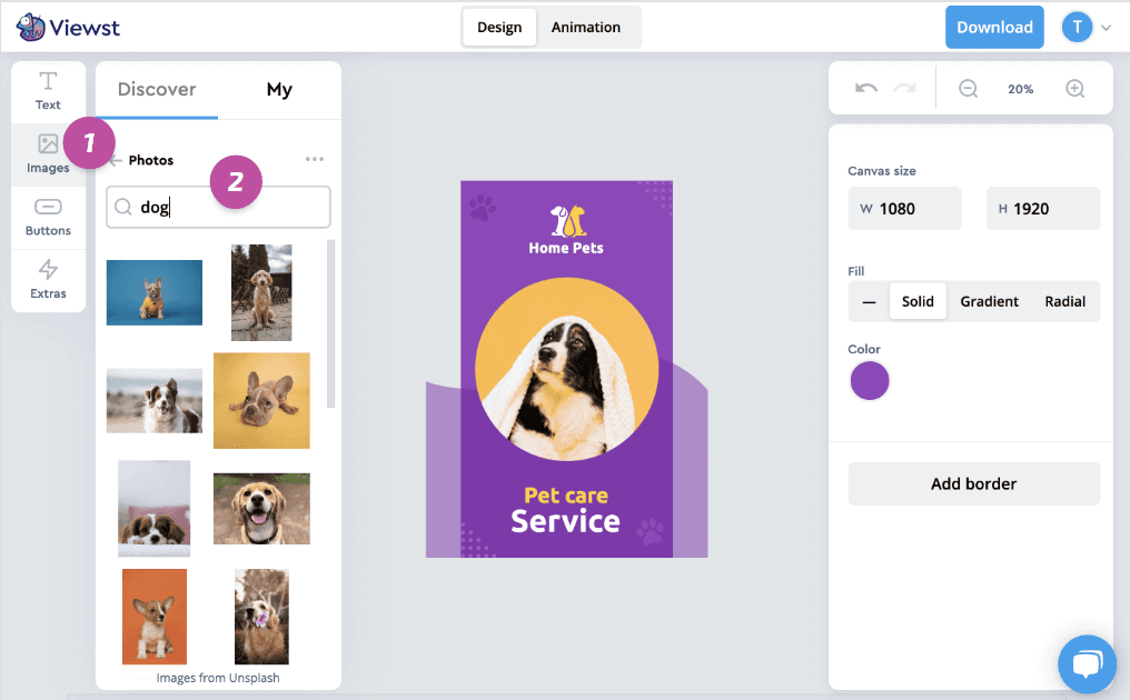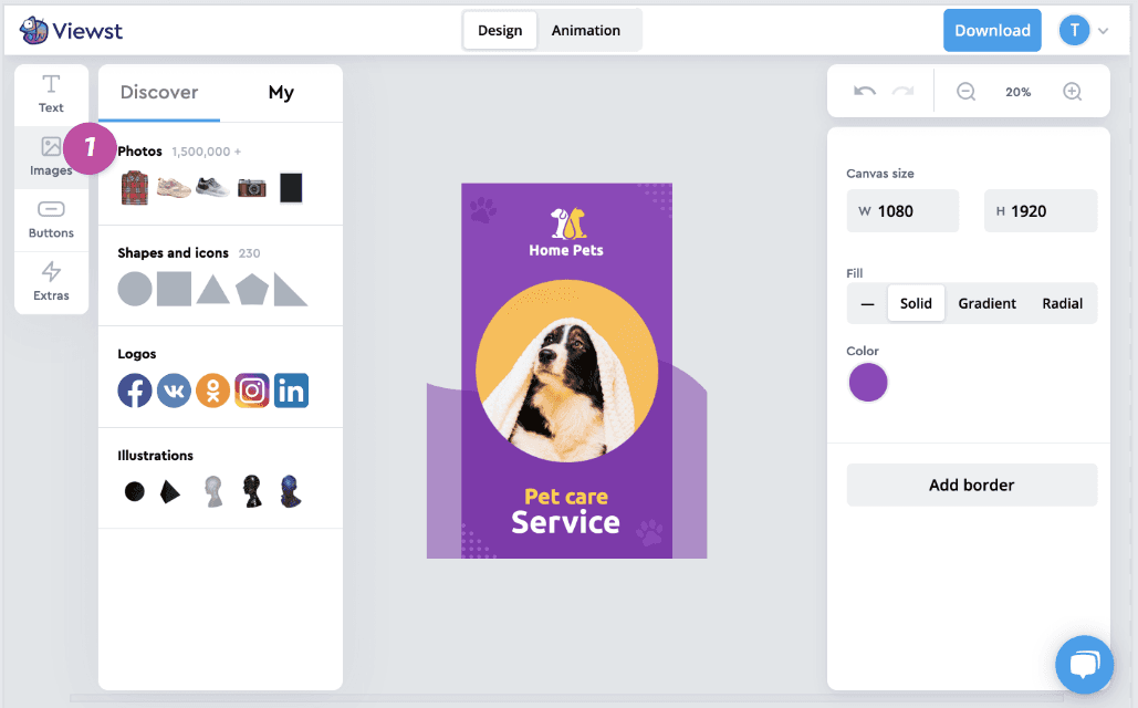 choosing from hundreds of images in the various Viewst libraries: Photos, Shapes, Icons, Illustrations, Logos.