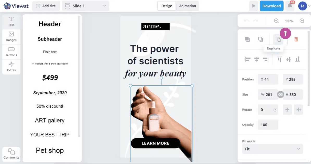 1in the Styles panel.The duplicated element will appear near the original element.
