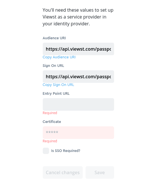 Copy the content of the file and paste it to the Certificate field of Viewst SSO Settings