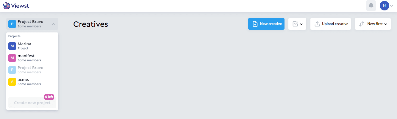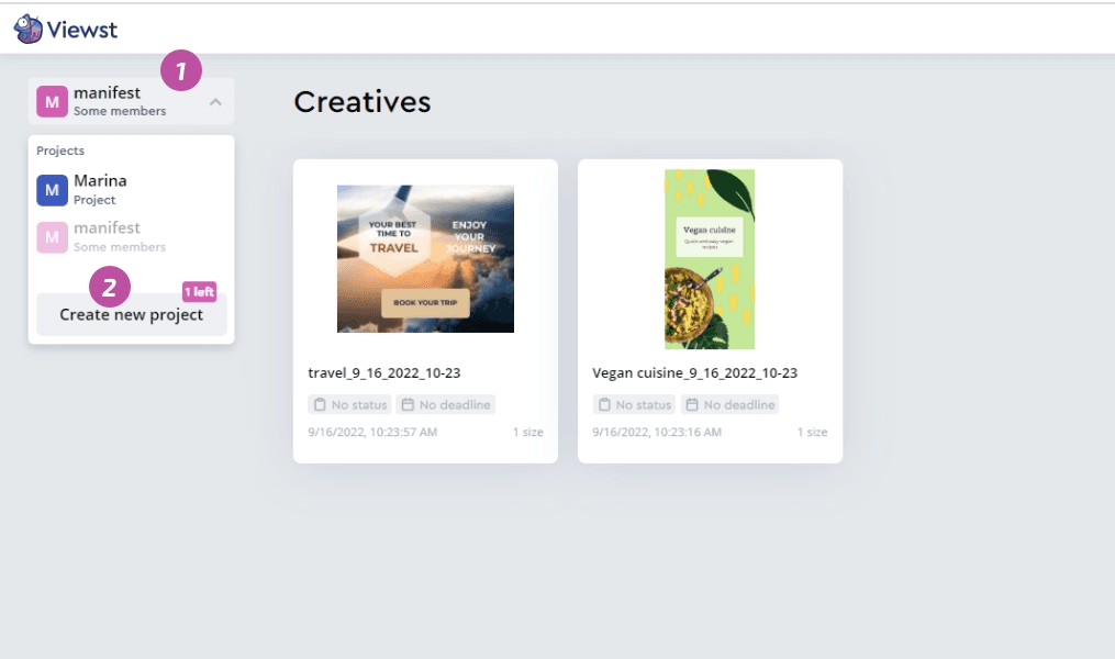 1on https://wizard.viewst.com/ .Click on the Create new project button
