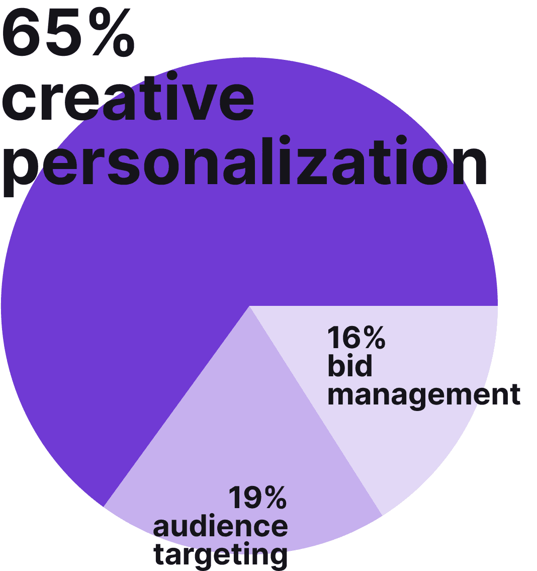 In a survey where participants were tasked with identifying the campaign element with the greatest potential to boost brand expansion and business results in the coming years, a significant majority (65%) chose creative personalization, surpassing audience targeting (19%) and bid management (16%).