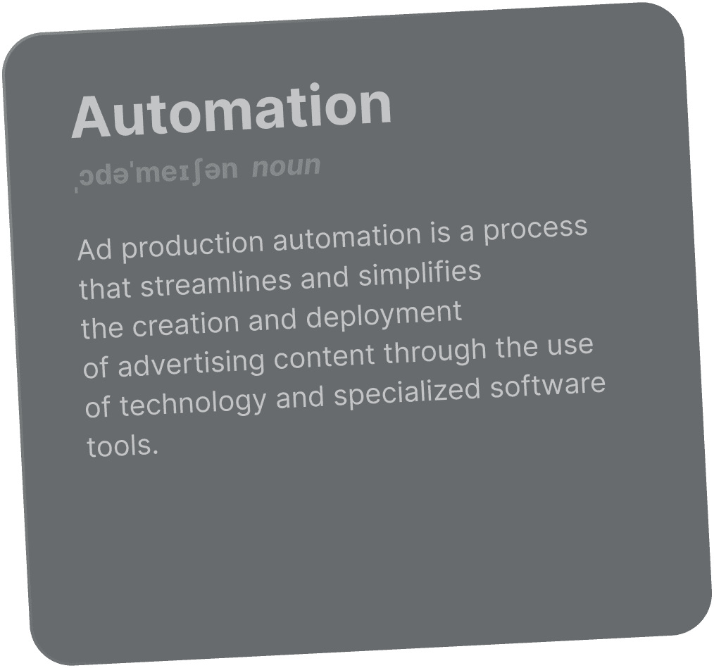 But the benefits don't stop there. Ad production automation empowers your team to unleash their creativity and develop compelling ideas that captivate your audience.